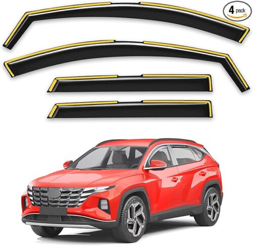 Rain guards, also known as window visors or deflectors, are essential accessories for Hyundai Tucson owners who want to enjoy fresh air circulation without inviting rain, wind, or debris into the cabin. Whether you’re driving the 2022-2025 models (including hybrids) or earlier generations, these add-ons mount either in-channel (sliding into the window frame) or tape-on (adhering to the exterior). They reduce wind noise, block UV rays, and add a sleek, aerodynamic look to your SUV.