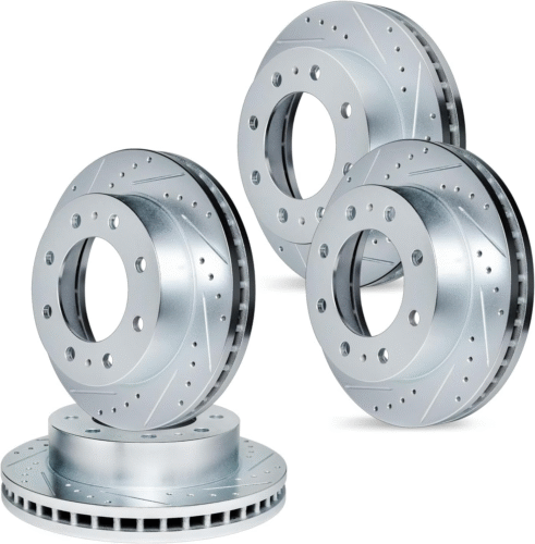 This kit stands out for its balance of performance and durability, making it ideal for daily drivers and occasional towers. Crafted from G3000-grade cast iron with zinc plating for superior rust protection, these rotors meet OEM specifications while adding drilled and slotted surfaces to vent gases and cool brakes faster.