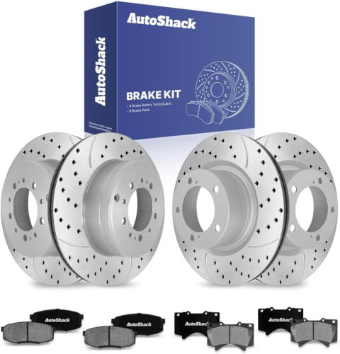 AutoShack Front & Rear Drilled & Slotted Brake Rotors Ceramic Brake Pads 2007-2021 Tundra