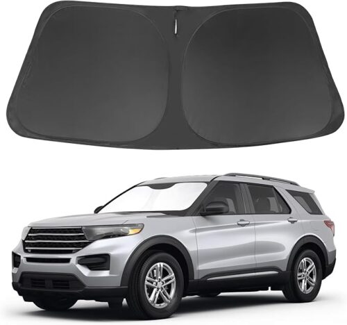 This premium rigid-fold sun shade is custom-patterned for the Ford Explorer, offering a precise fit with a cutout for sensors and cameras. It features a triple-laminate construction with a foam core for excellent insulation and reflectivity. Users praise its durability—it doesn’t sag or curl like cheaper roll-up shades—and its ability to significantly lower interior temperatures. It’s the official Ford accessory in many cases and highly recommended on Explorer forums.
